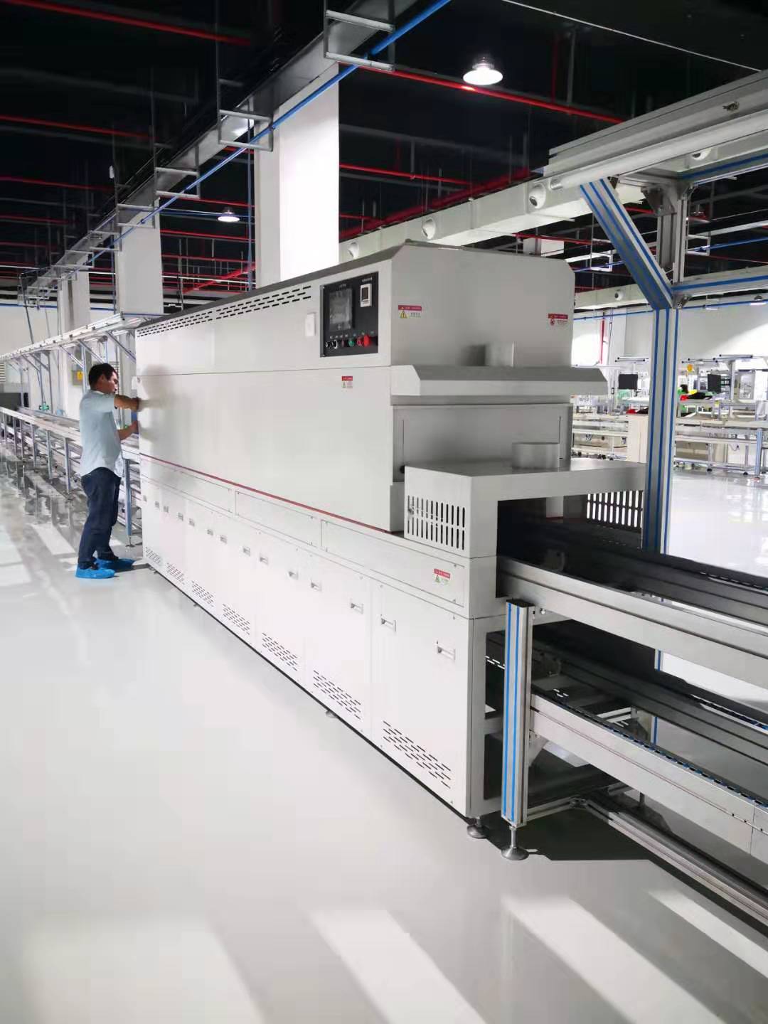 加熱方式:遠紅外上下加熱;輸送速度:0-5m/min分鐘;采用熱風循環方式,爐內溫度均勻,升溫快,加熱方式分熱風循環和遠紅外加熱式兩種,節省能源已廣泛應用于五金產品和塑膠產品脫水烘干,烤漆烘干,家私木器、五金金屬業、電鍍業、電子業、包裝業、皮具業、印刷業、塑膠業、食品業的烘焙、干燥熱處理、定型等。